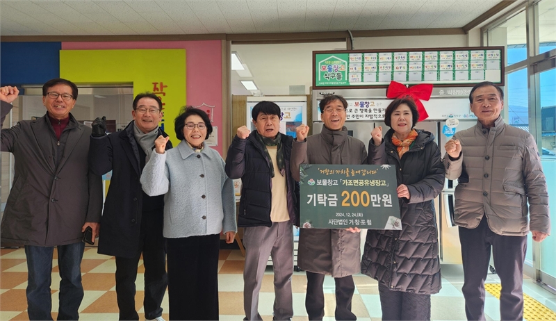 [시사의창=이태헌 기자]사단법인 거창포럼 김칠성 회장과 회원들은 지난 24일 가조면행정복지센터에서 연말을 맞이하여 '보물창고 가조면공유냉장고'에 물품 대금으로 200만원을 기탁했다.