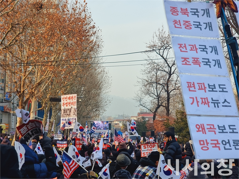이날 윤 대통령의 헌재 출석 소식이 알려지자 헌재 주변에는 대통령 지지자들이 대규모 집회를 열며 “탄핵 무효”와 “즉시 석방”을 외쳤다. 보수단체인 ‘엄마부대’와 자유통일당, 대한민국바로세우기국민운동본부(대국본) 등이 주최한 집회에는 경찰 추산 약 4000명(주최 측 추산 1만 명)이 참석해 인근 도로를 가득 메웠으며, 지난 16일 서부지방법원의 폭동사태를 의식해서인지 평화적인 집회를 강조하는 발언이 이어졌다.