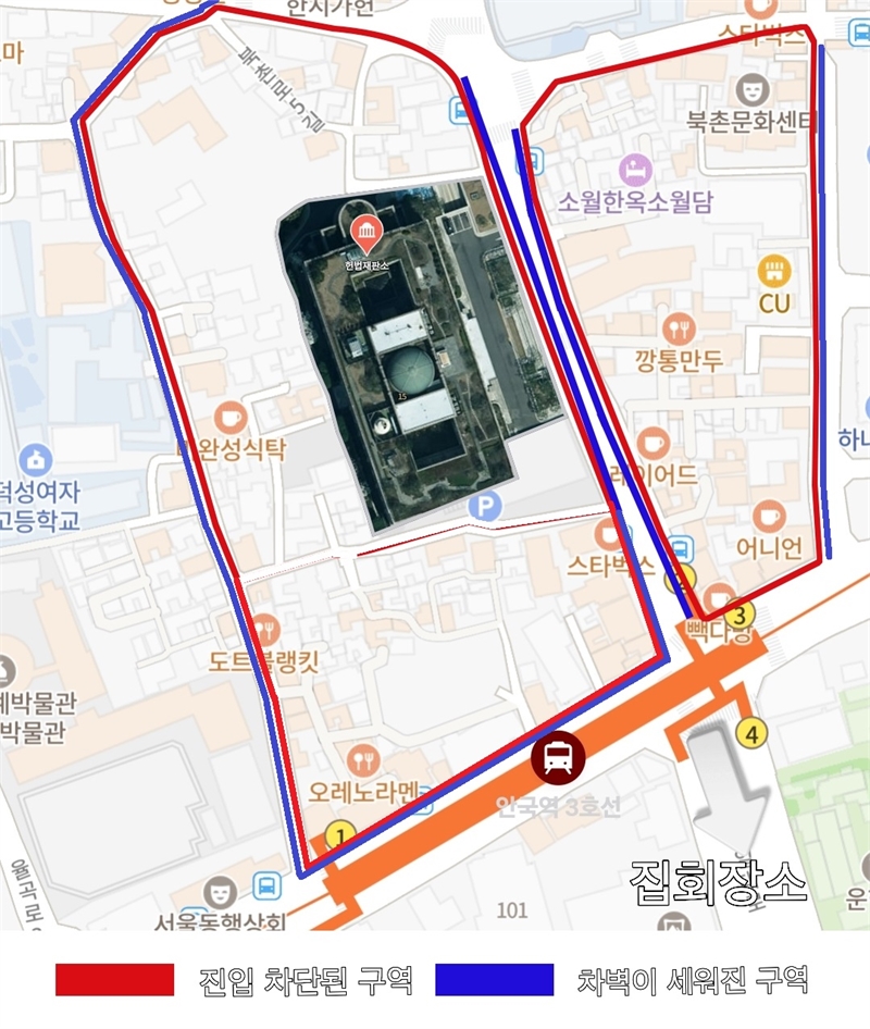 헌법재판소 주변 도로, 골목길 등 완전히 차단돼