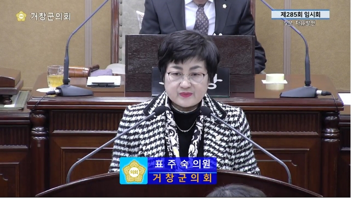 [시사의창=이태헌 기자]거창군의회 표주숙 의원(국민의힘)은 26일 오전 열린 거창군의회 제285회 임시회 제1차 본회의에서 '군민안전보험 보장항목 확대 제언'을 내용으로 하는 5분 자유발언을 했다.