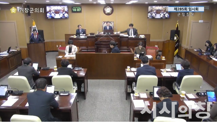 거창군의회 제285회 임시회 제3차 본회의 표주숙의원 군정질문 모습