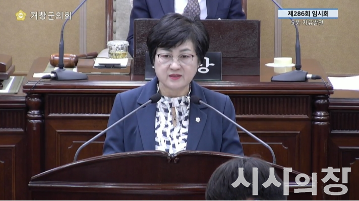 10일 오전 거창군의회 제286회 임시회 본회의 발언중인 표주숙 군의원