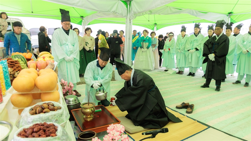 1일 김윤철 합천군수가 황매산철쭉제례를 올리고 있다.(사진 합천군 제공)