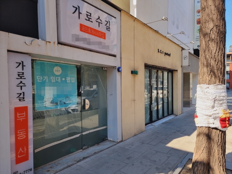 이와 관련해 A부동산의 윤 모 대표는 “동일 건물이 상당기간 통으로 공실 상태인 상황이 맞다.”면서 “하지만 건물주의 경우 대기업 팝업스토어 몇 달만 임대해 줘도 1년 치 임대료가 나오니 아무리 공실 상황이 계속 이어져도 건물주는 눈 하나 깜빡 하지 않는다”고 말했다. 가로수길 주변의 건물 곳곳에는 ‘팝업 스토어 임대 문의’란 글귀도 어렵지 않게 찾아볼 수 있었다.
