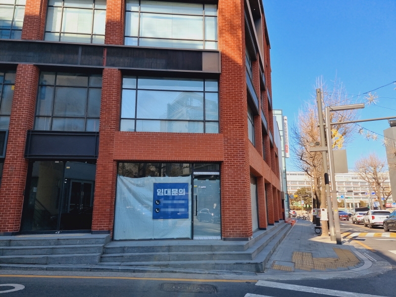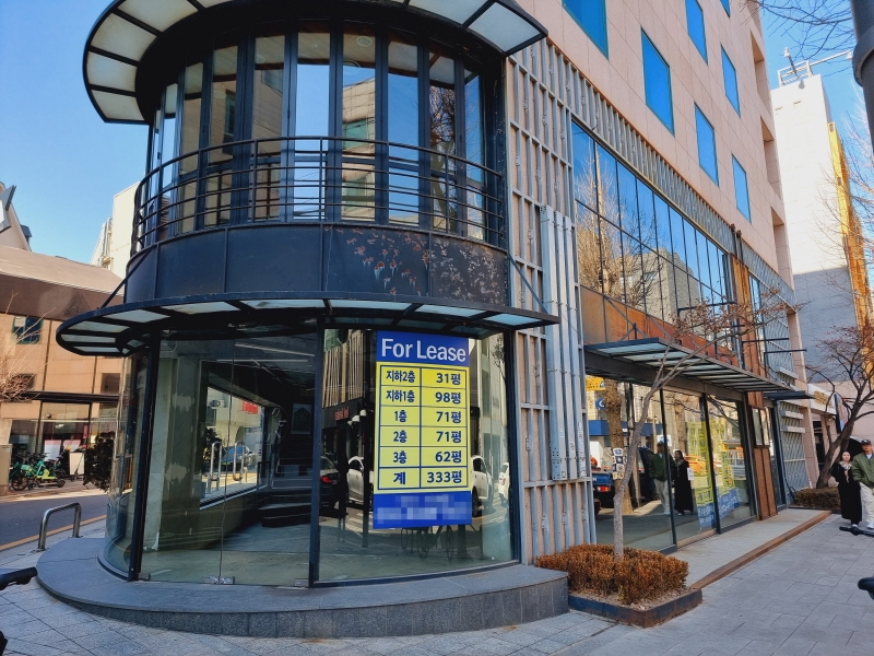 나로수길의 한 건물 1층에 임대 문구가 적혀 있다.