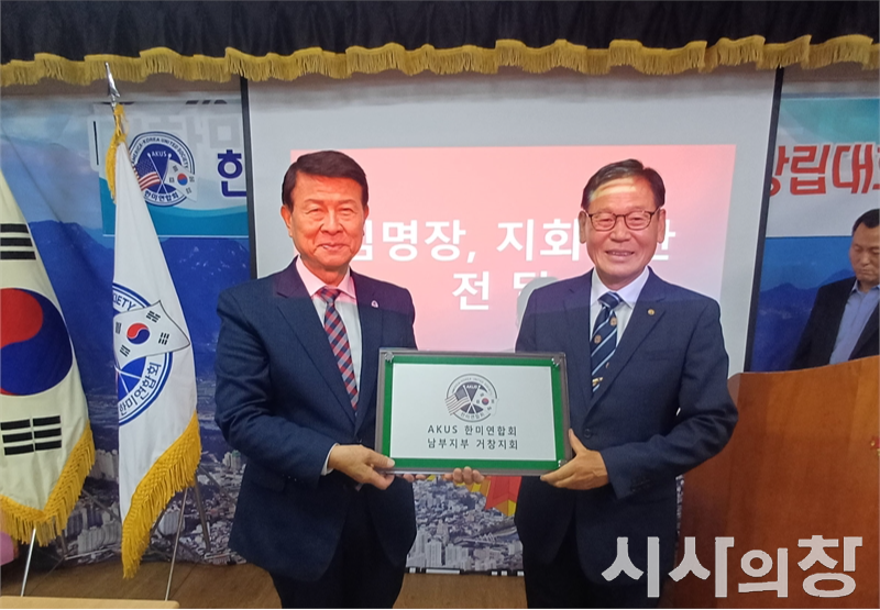 [시사의창=이태헌 기자]한미연합회(AKUS) 거창군지회 창설식이 22일 오후 6시 거창군재향군인회관에서 송대성 한국회장을 비롯한 한국본부임원과 김윤수 거창군지회장 등 50여명이 참석한 가운데 열렸다. 송대성 AKUS한국회장이 김윤수 거창군지회장에게 현판을 전달하고 있다. 한미연합회 거창군지회 창설 결의문 낭독 모습 AKUS거창군지회 창립대회 참석한 한국본부관계자 등 기념사진 모습 이태헌 경남취재본부장 arim123@daum.net 1 0 종합일간지 국제신문에 입사(1988) 편집국 소속 기자로 부산 경남에서 17년간 근무했으며 2004년 귀향(경남 거창) 도립거창대학과 한국승강기대학교에서 겸임교수 등으로 마케팅 강의를 해오고 있다. 박사학위는 'AHP분석을 통한 남북한 협력방안에 관한 연구'로 경상국립대학교에서 받음(2009) 시사의창 이태헌 경남취재본부장 arim123@daum.net 이태헌 경남취재본부장의 기사 더보기 저작권자 ⓒ 시사의창, 무단 전재 및 재배포 금지