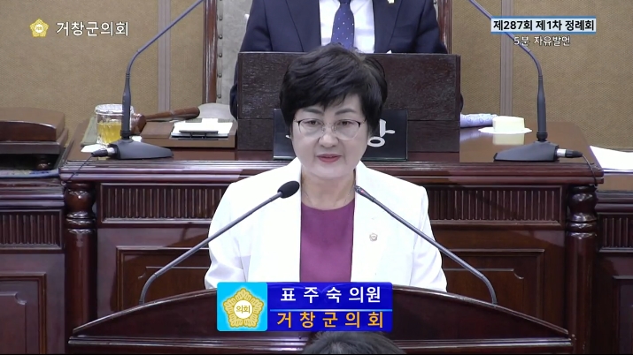 제287회 정례회 본회의 발언에 나선 표주숙 의원(거창군의회 영상캡쳐)