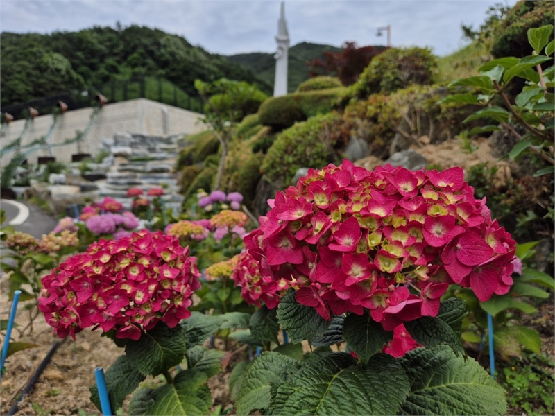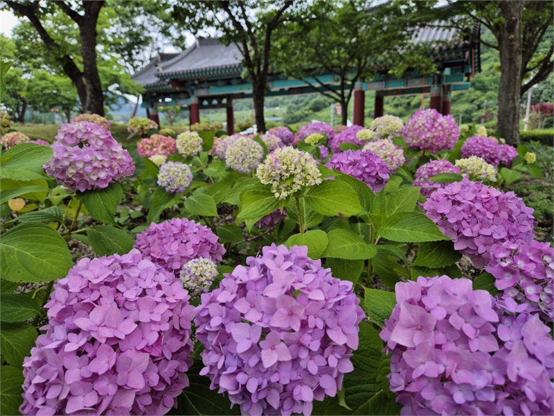 거창사건추모공원은 한국전쟁 당시 민간인 희생의 아픔을 간직한 공간으로, 무고하게 희생된 이들의 비극을 기억하는 곳이다. 올해 5월 새롭게 조성된 수국 동산에는 형형색색의 수국 1,800본과 나무수국 800그루가 만개해, 참혹했던 역사 위에 희망과 위로의 메시지를 전하는 특별한 공간으로 거듭났다.