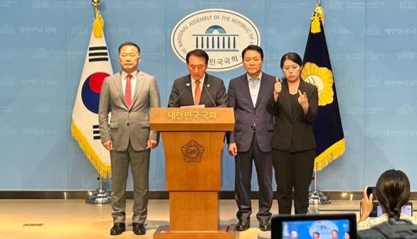 신성범의원을 비롯해 국힘소속 3명의 상임위원장 기자회견 모습