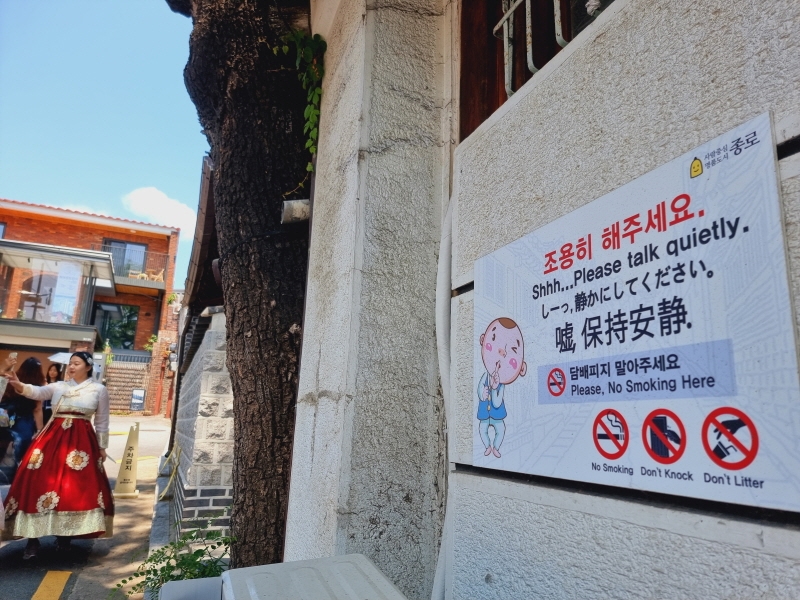 북촌한옥마을 곳곳에 걸려 있는 주민 피해 방지를 위한 안내문