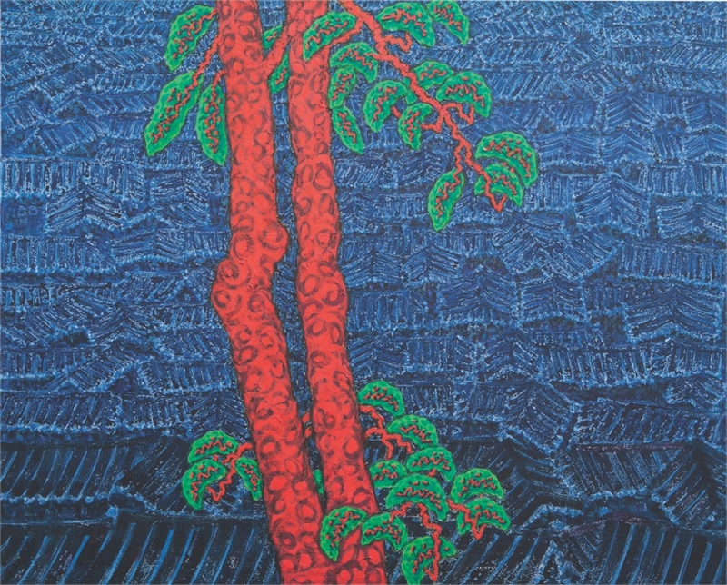 작가의 작품에는 주황빛의 황토밭 옹기종기 모여있는 시골 마을과, 소복이 눈 쌓인 들판, 한옥 지붕의 묵직함을 배경으로 소나무를 배치하여 우리에게 익숙한 짙은 향기의 작품들을 그려내고 있다. 종교적 진심과 일맥상통하게 만드는 숭고미가 있는 작품들을 오랜 시간, 소나무에 천작(天作)함은 작가 개인에겐 결코 쉬운 일이 아닐 텐데, 변함없는 소나무에 대한 애정의 시선은 우리에게 매우 익숙한 정서로 안내한다. 때문에 작가의 작품에는 장식성보다 작품성이 돋보이는 부분이다.과감한 붉은색 계열의 소나무를 배치해 놓은 새로운 시각은 한국적 감성을 환기한다. 기와지붕을 배경으로 제작된 소나무 그림은 과거, 우리의 마음속 풍경을 절묘하게 끌어낸다. 작가의 소나무는 한국적 혼의 깊숙한 곳에 위치한다.
