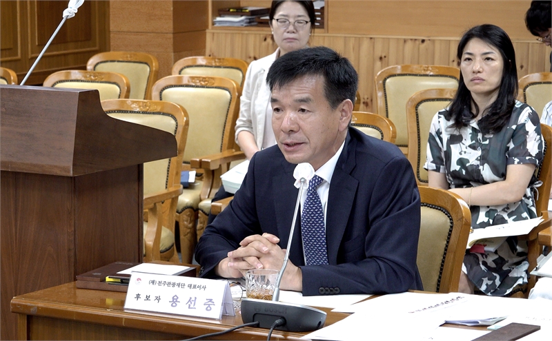 [시사의창=전북] 전주시의회가 24일 용선중(62) 전주관광재단 대표이사 최종 후보자에 대한 인사청문회에서 ‘적합’ 의견을 내고, 이를 전주시에 전달키로 했다.
