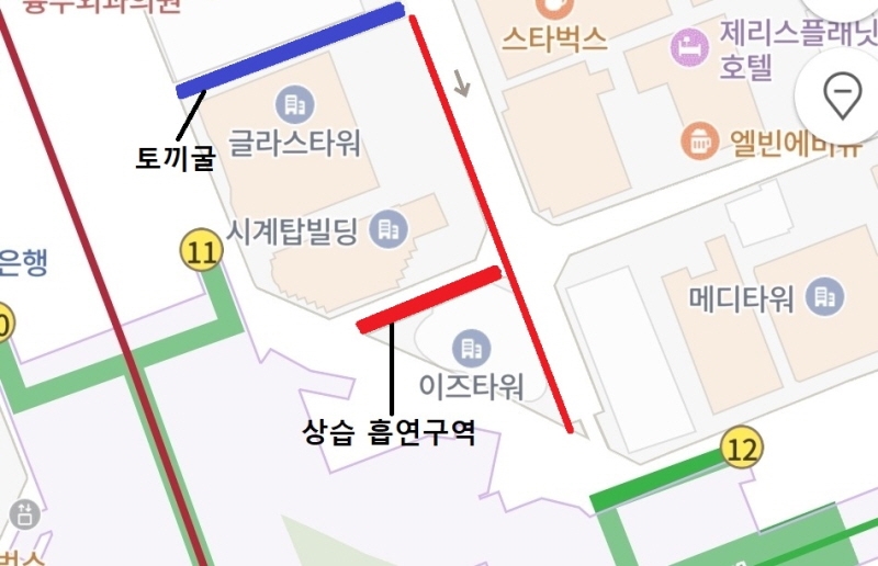 토끼굴 주변 비공식 흡연구역. 하지만 이곳은 엄연히 흡연 금지 구역이로서 과태료 10만원이 부과된다.