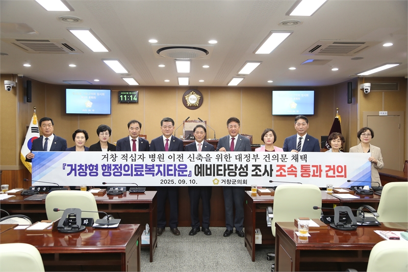 또한, 「거창 적십자 병원 이전 신축 대정부 건의문」이 채택됐다. 건의문은 ‘거창형 행정의료복지타운’ 조기 착공을 위해 예비타당성 조사 통과와 정부 차원의 행·재정적 지원을 요구하는 내용을 담고 있다.