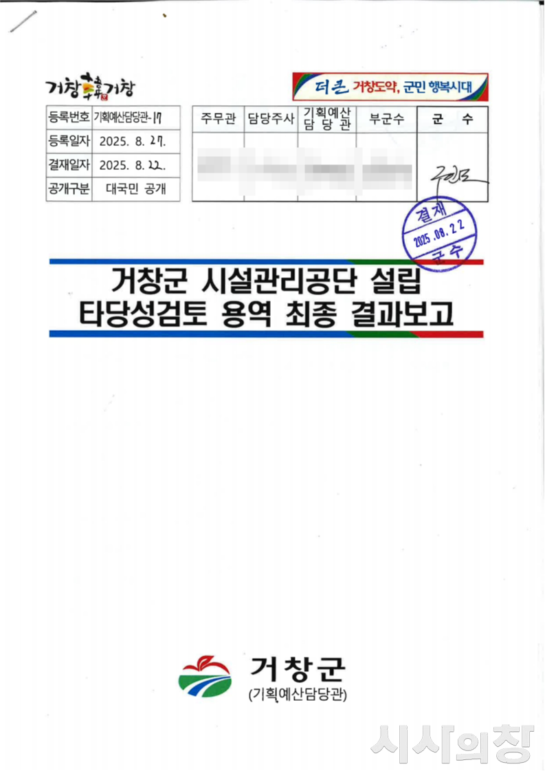 [시사의창=이태헌 기자][시사의창=이태헌 기자]경남 거창군 시설관리공단 설립 용역 보고서의 “3쪽짜리 공개”를 둘러싸고 지역 공감대 부족과 절차 투명성 등의 다각적 문제 지적이 제기되고 있다.