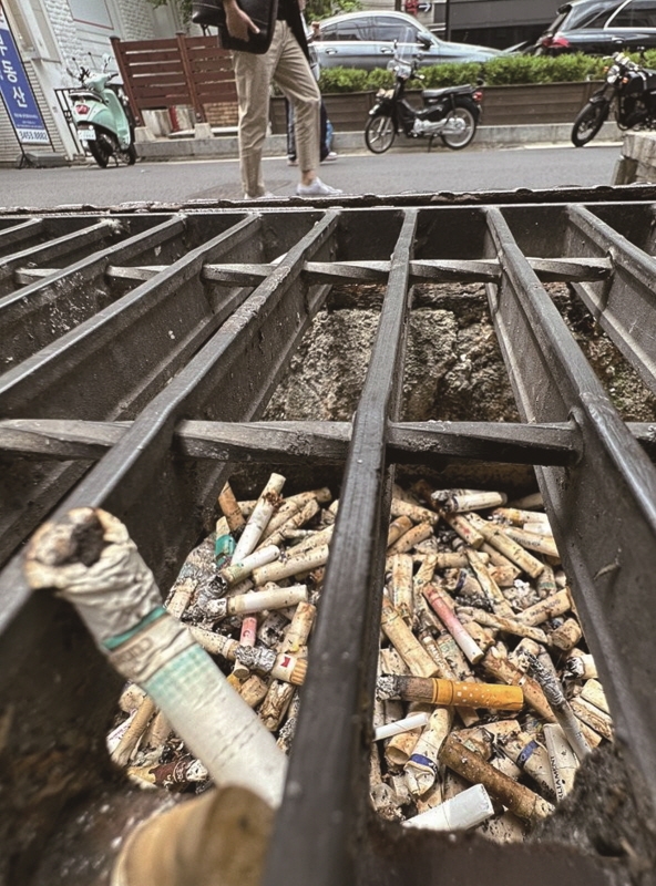 서울시 곳곳의 빗물받이가 ‘길거리 쓰레기통’으로 전락하고 있다. 특히 사람이 많이 몰리는 번화가 주변, 야외 흡연자가 밀집한 지역의 빗물받이 상황은 더욱 심각하다. 아니 심각하다 못해 처참한 수준이었다. 거리 청소를 전담하는 이들은 말한다. 술집 앞, 버스 정류장 근처, 흡연 공간 주변의 빗물받이는 단 하루만 지나도 담배꽁초가 수십 개씩 쌓인다.
