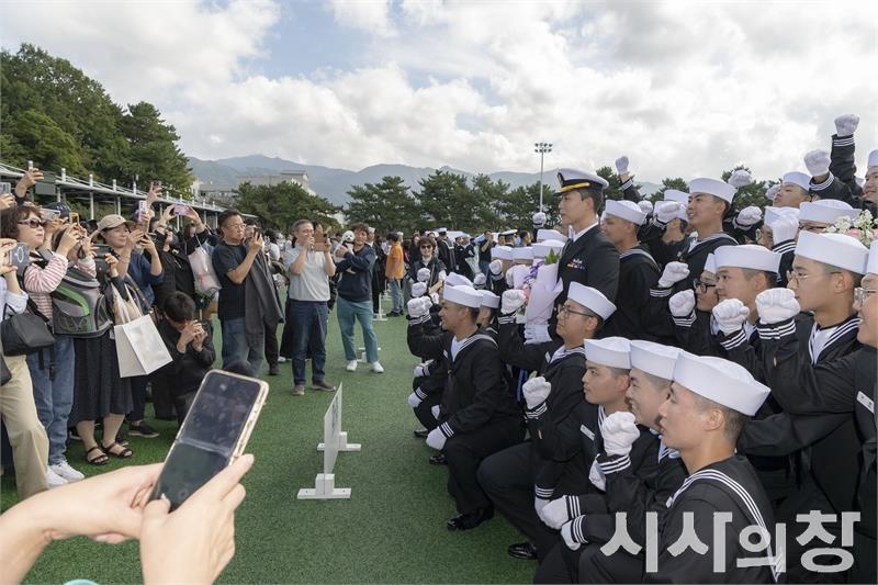 해군교육사령부강정호 사령관(중장)은 “해군 선배들의 전통을 이어 조국의 바다를 지켜달라”고 당부하며, “건강하고 명예롭게 복무하는 자랑스러운 해군으로 성장하길 기대한다”고 격려했다.