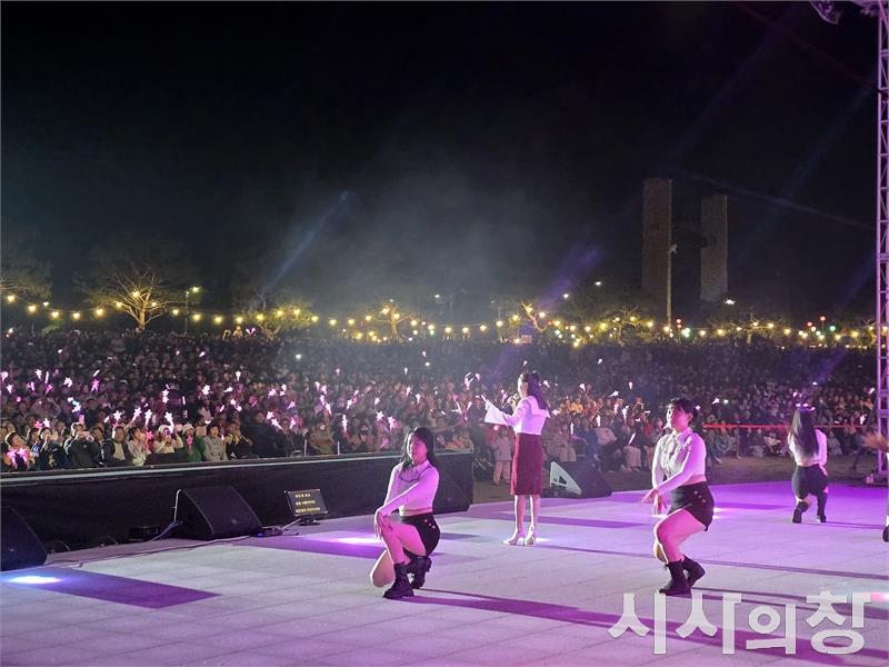 특히 ‘트로트 여왕’ 송가인이 등장하자 현장은 환호로 들썩였다. 감미로운 음색과 따뜻한 무대 매너로 황룡강의 가을밤을 수놓으며, 축제의 열기를 최고조로 끌어올렸다.