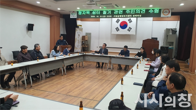 [시사의창=이태헌 기자] 31일 오후 거창읍사무소에서 ‘정자나무 쉼터 철거 관련 주민의견 수렴회’가 열렸다.