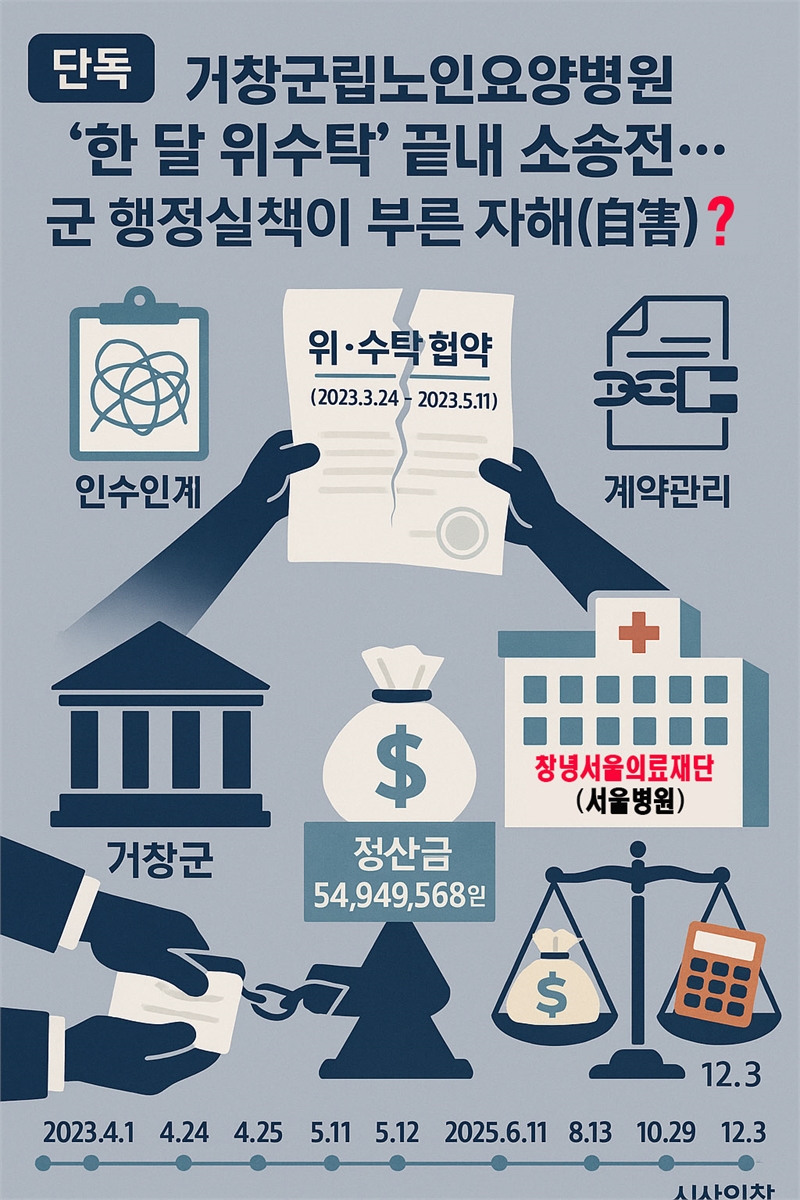 거창군은 '누가 이기느냐?'보다 '왜? 이런 소송이 가능했느냐?'에 먼저 답해야 한다. 책임 있는 자기점검과 제도 개선만이 또 다른 공공기관 위·수탁 분쟁을 막는 최소한의 방패다.
