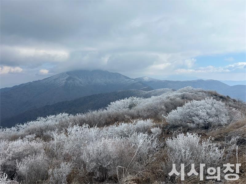 [시사의창=송상교기자] 11월18일(화) 전남 구례군 지리산국립공원 노고단 일원에는 기온이 영하권으로 떨어지며, 올겨울 첫 상고대가 형성됐다.