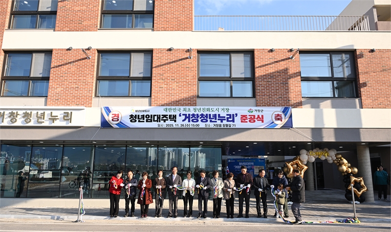 [시사의창=이태헌 기자]청년 주거 불안 해소와 지역 정착 유도를 위한 거창군의 첫 청년임대주택 ‘거창청년누리’가 마침내 완공돼 입주를 시작했다. 26일 구인모 거창군수, 이재운 거창군의회 의장 표주숙 군의원 등 내빈과 관계자, 입주민, 청년단체 등 50여 명이 참석한 가운데 준공식을 개최하며 청년들이 머무는 새로운 보금자리의 탄생을 알렸다.
