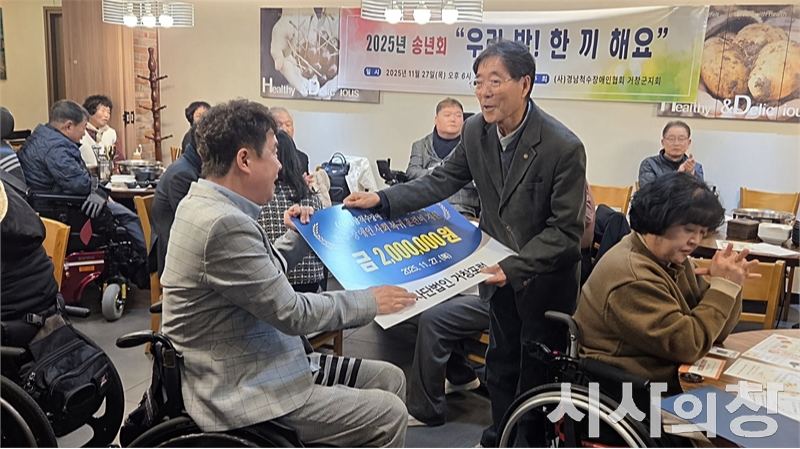 [시사의창=이태헌 기자](사)한국척수장애인협회 거창군지회(지회장 김경진)는 지난 11월 27일 (사)거창포럼(회장 김칠성)으로부터 척수 장애우들의 사회 복귀 훈련비 200만 원을 지원받았다고 밝혔다. 이는 2020년 협약 체결 이후 5년간 이어져 온 지속적인 지원의 일환이다.