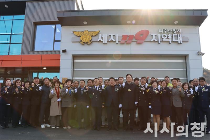 나주소방서는 12월 2일 세지119지역대 신청사에서 윤병태 나주시장, 최명수 도의원 등이 참석한 가운데 지역 안전 강화를 위한 뜻깊은 행사를 개최했다. 이날 행사에서는 신청사 개청식과 함께 세지면 전담의용소방대 발대식이 진행되며 지역 대응체계의 새로운 전환점을 마련했다.[시사의창=송상교기자]