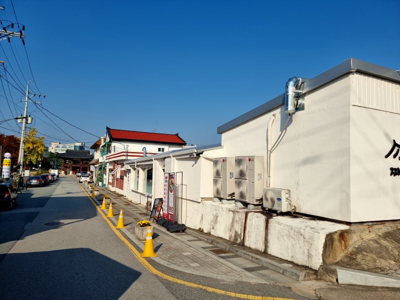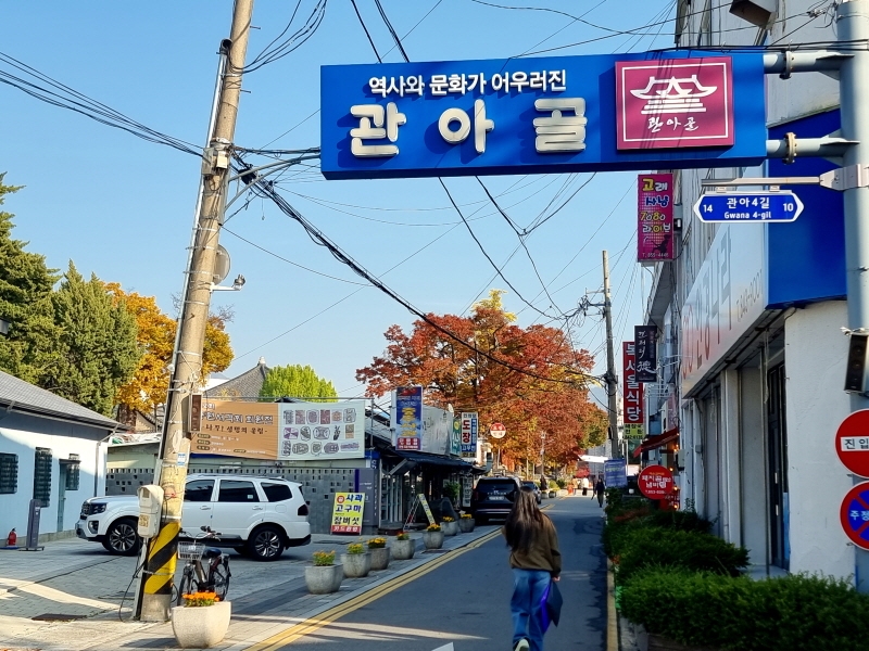 젊은 분위기로 가득한 매장들이 모여 있는 관아골의 모습