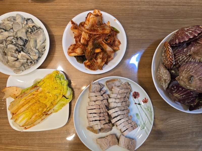 김장은 진두지휘하는 총사령관이 있어야 한다. 우리에게는 바로 큰 처형이다. 그녀의 말에 모든 사람이 일사불란하게 행동한다. 마지막 하이라이트는 양념을 만드는 것이다. 늘 큰 처형의 몫이다. 바로 여기서 김장의 맛이 가장 크게 좌우한다. 무게를 재는 것이 아닌 눈썰미로 양을 가늠하는 모습이 카리스마가 있다. 계량하지 않고 큰 처형의 그만이라는 신호가 나올 때까지 쏟아붓는다. 오랜 경험을 통해 나오는 적절한 시점에서 ‘그만!’이라는 말이 사령관의 명령보다 준엄하다. 배추에 양념을 묻히는 작업을 이번엔 둘째 딸도 거드는 모습도 보기 좋다. 배추 한 잎을 뜯어서 양념을 묻혀서 먹어도 맛나지만, 잘 삶은 돼지고기 수육, 생굴과 함께하니 최고의 별미다. 조카가 가져온 몰트위스키와도 근사하게 잘 어울린다.