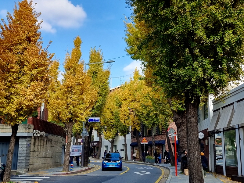 보통 서촌이라 불리는 효자로는 그야말로 단풍 명소 중의 명소로 손에 꼽힌다. 3호선 경복궁역 4번 출구로 나와 큰길에서 우회전하면 그 길 끝까지 직선으로 이어지는 왕복 4차로 양쪽에는 큼지막한 은행나무들이 줄지어 서 있다.