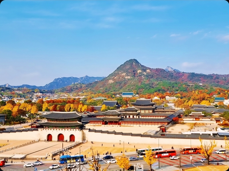대한민국역사박물관 8층 옥상정원에서 바라본 경복궁과 청와대의 가을 풍경