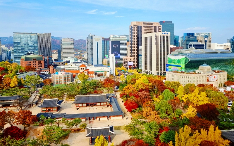 서울시청 서소문 청사 1동 13층 전망대에서 바라본 덕수궁의 가을.