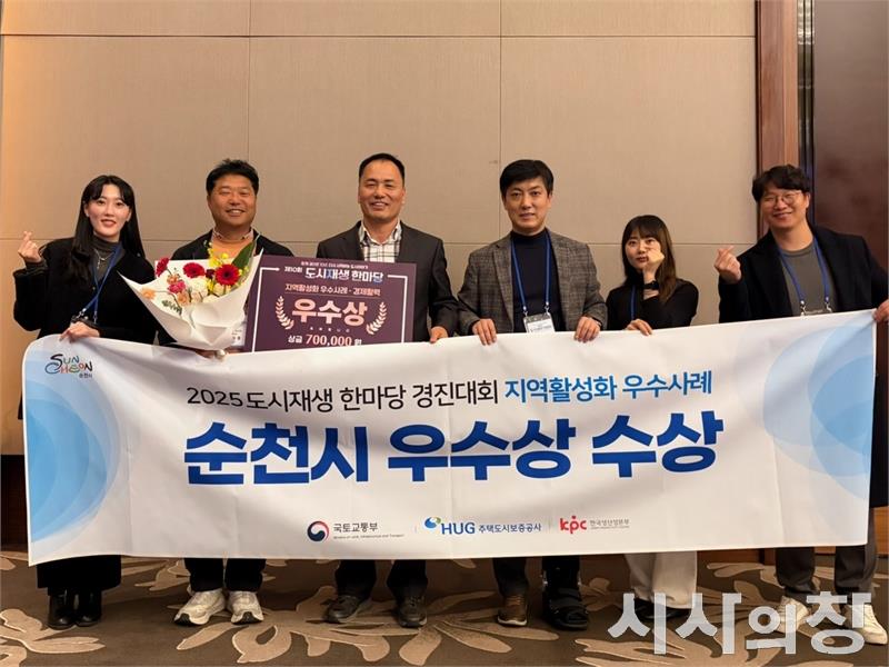 순천시가 지난 10일 콘래드 서울 호텔에서 개최된 국토교통부, 주택도시보증공사 주최 ‘2025년 제10회 도시재생 한마당 경진대회’에서 우수상을 수상했다고 밝혔다. 순천역전 마을관리 사회적협동조합이 운영하는 플라워카페(마을카페)를 중심으로 한 민간참여 확대, 지역 상권 협력, 지역경제 회복 성과에서 높은 평가를 받았다.