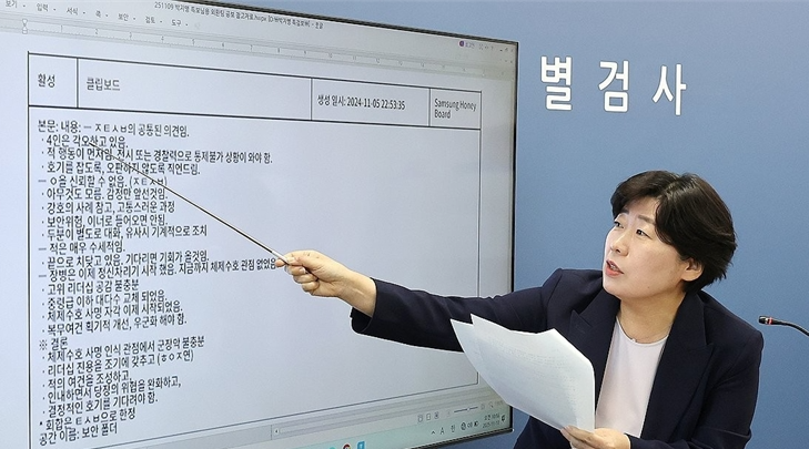 박지영 내란특검보가 10일 특검 사무실이 마련된 서울 서초구 고등검찰청 기자실에서 브리핑을 열고 "윤석열과 김용현, 여인형 등은 비상계엄을 선포할 수 있는 여건을 조성하기 위한 목적으로 남북 간 무력 충돌 위험을 증대시키는 등 대한민국의 군사상 이익을 저해했다"고 밝히고 있다./연합뉴스