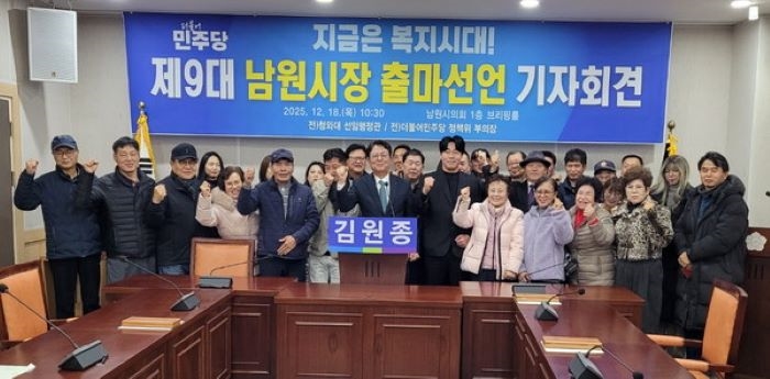 김 대표는 출마 선언문에서 “남원시 1인당 지역내총생산은 약 2,400만원으로 전북 최하위 수준에 머물러 있다”며 “이로 인해 시민들의 삶은 갈수록 팍팍해지고 청년 유출은 구조화되고 있다”고 지적했다.